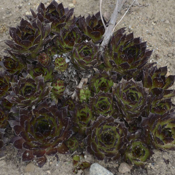 Sempervivum is comprised of one large rosette called the "hen" which sprouts many smaller rosettes around it called "chicks". As the plants age, the "hen" may die out and be replaced by the "chicks". Plants can be divided easily at any time by pulling up some of the "chicks" and replanting them elsewhere.
