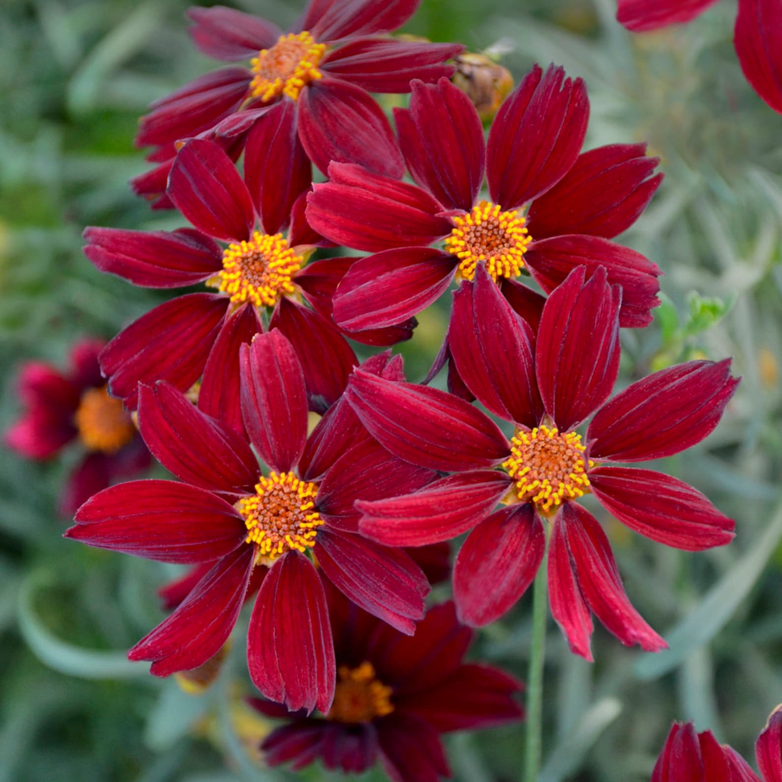 Coreopsis, also known as tickseed or calliopsis, can be annual or perennial (we sell only perennials), typically reaching heights of 1 to 3 feet with slender, upright stems. Their leaves are generally opposite and may be simple or lobed.
